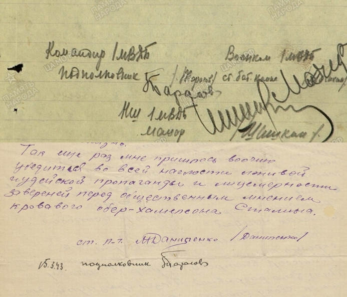 Если вначале Тарасов, похоже, действительно поверил, что власовская РОА реальна, и летом 1943-го выражал в беседах с немецкими чиновниками озабоченность тем, что "дело не двигается дальше", а существующие части РОА (то есть восточные батальоны) умело разлагаются партизанами при помощи женщин и шнапса (буквально так в документе), то очень скоро он принял немецкую точку зрения: