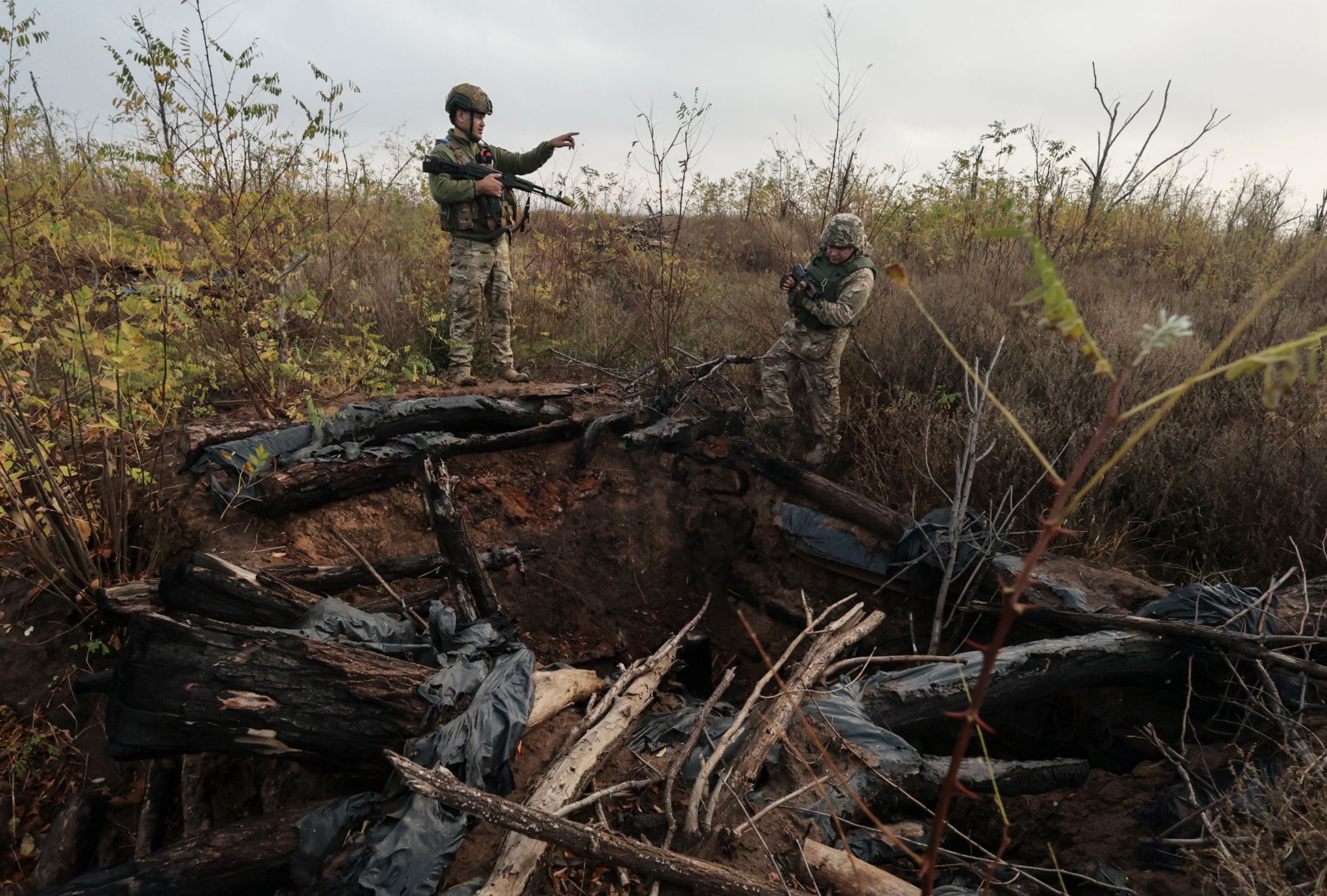 Украинские военные инспектируют территорию у села Работино, с которой отступили российские войска.