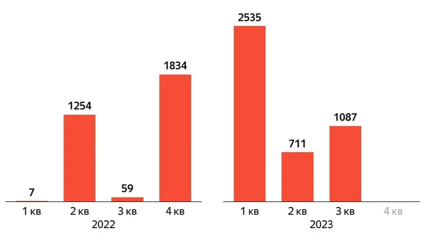 Как мы видим, скачок на 99.9 (9)% произошел во втором квартале 2022 года после принятия всевозможных законов, ущемляющих свободу слова.