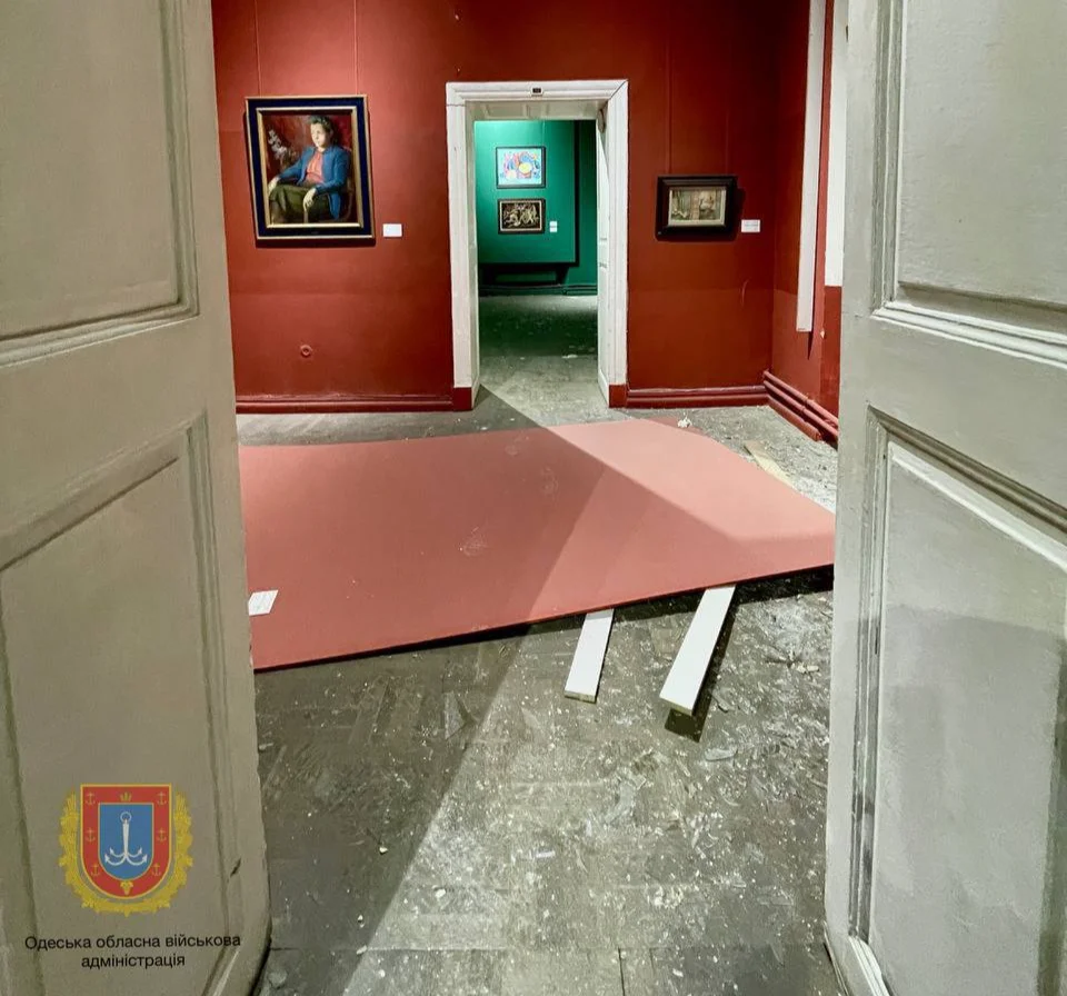 Под обстрел попал Одесский национальный художественный музей, которому сегодня исполняется 124 года. В здании повреждены стены, выбиты некоторые стекла и стекла.