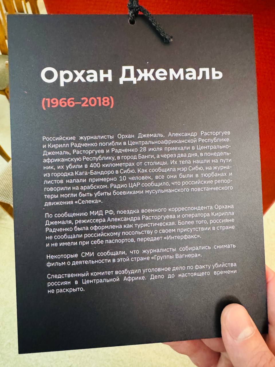 Так, в карточке, рассказывающей о смерти Орхана Джемаля, есть информация из заявления МИД РФ том, что журналисты приехали в Центральноафриканскую республику по туристической визе и не предупредили посольство, но ничего не сказано о возможных политических мотивах убийства.