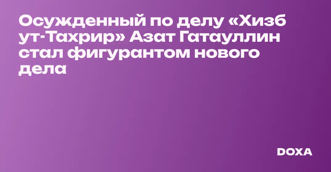 2 ноября в Центральный окружной военный суд поступило новое уголовное дело против осужденного по делу о причастности к «Хизб ут-Тахрир» казанца Азата Гатауллина. На карточку дела обратило внимание «ОВД-Инфо».
