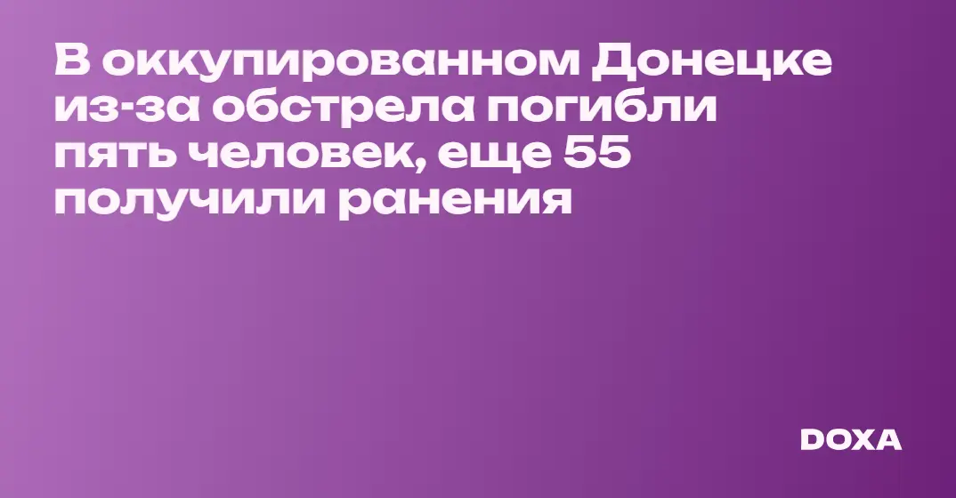 В оккупированном Донецке из-за обстрела погибли пять человек, еще 55 получили ранения