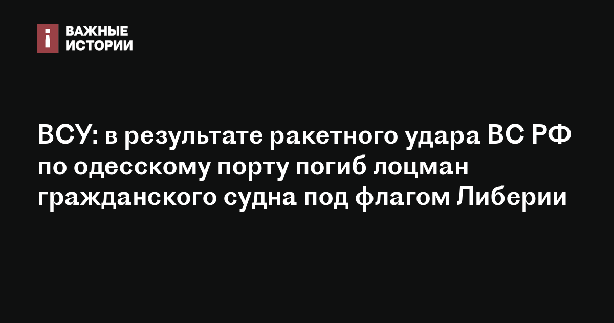 ВСУ: в результате ракетного удара ВС РФ по одесскому порту погиб лоцман гражданского судна под флагом Либерии