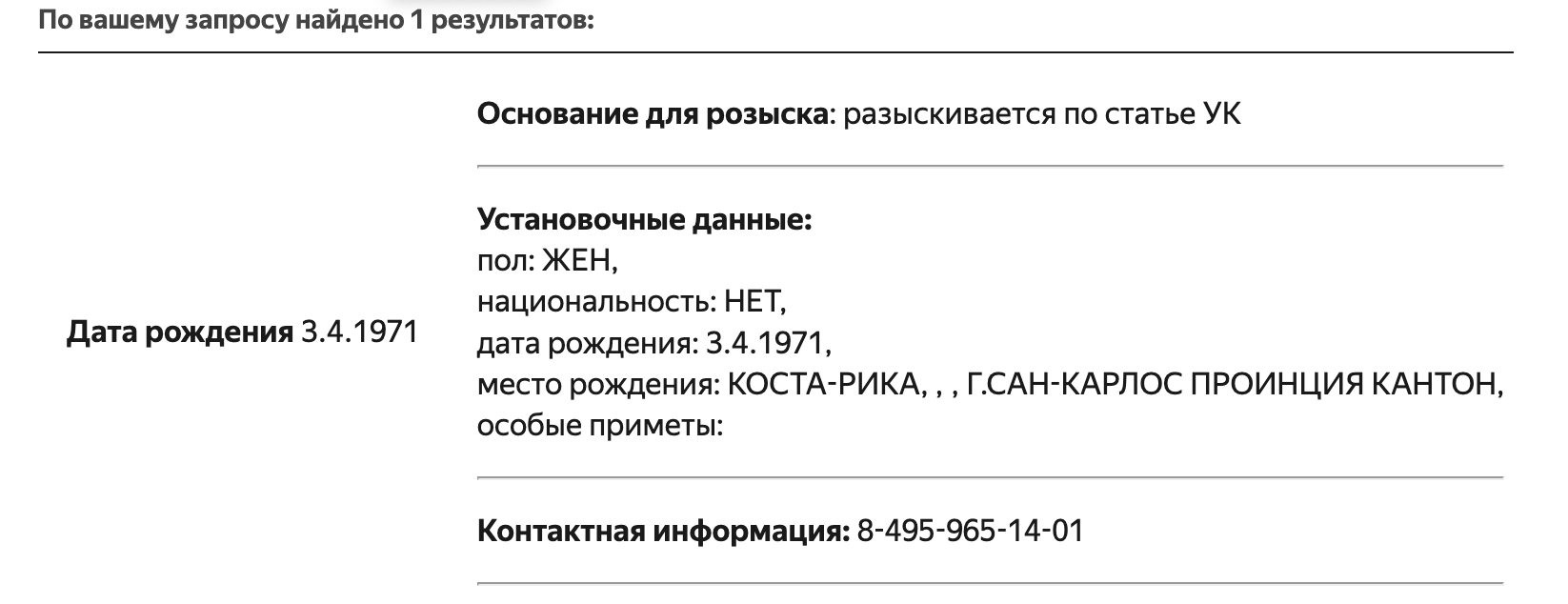 Карточка розыска судьи Серхио Годинеса из базы МВД