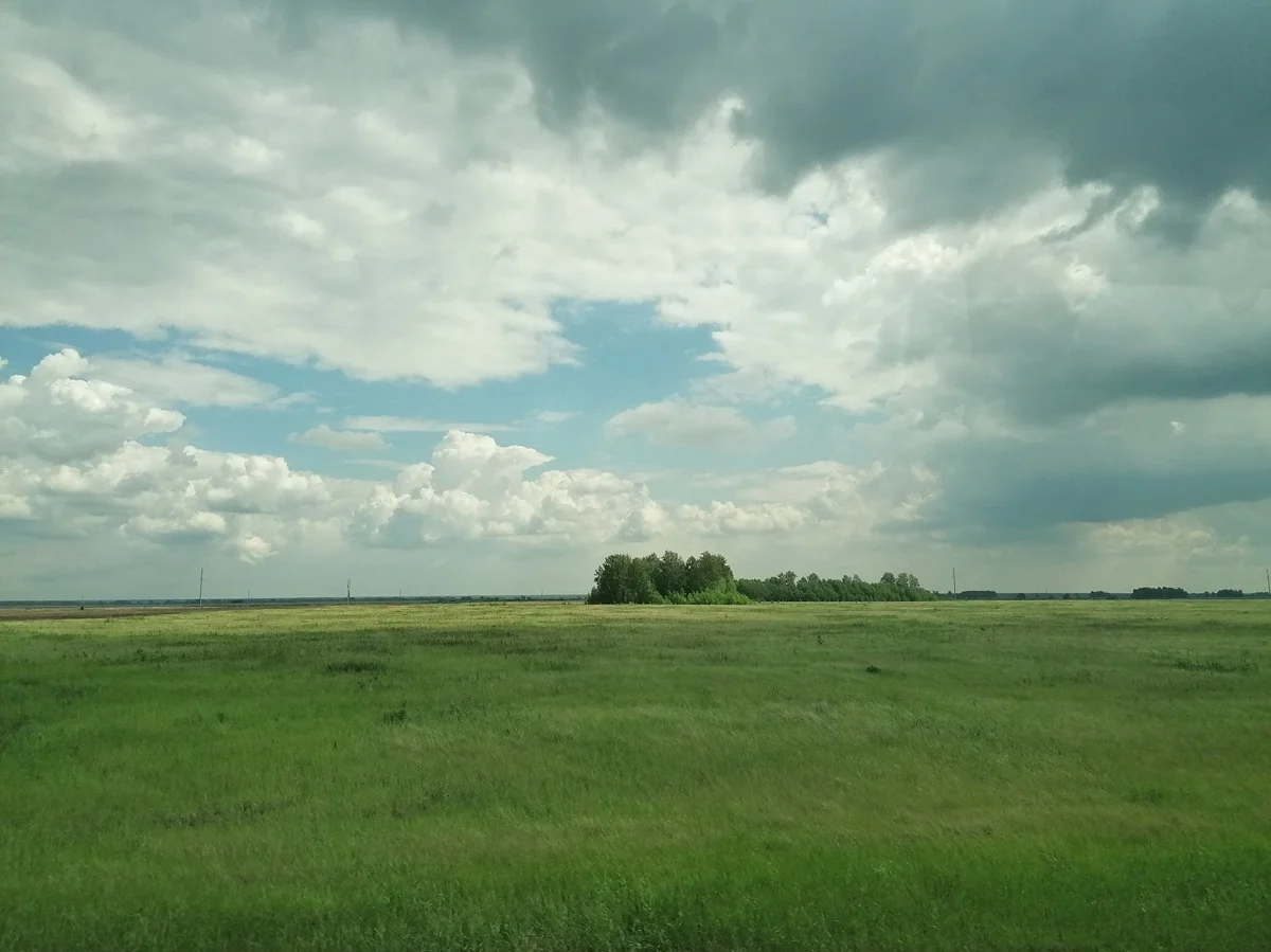 Я проехала там за несколько недель до Бориса Александровича, в июне; рожь была еще зеленой. В тех местах примечательно то, что там ничего нет. Равнины, луга, и все. Колки, острова леса — это максимум «событий». Я ехала в Тобольск и делала фото, не могла перестать, кадр за кадром. Они — доказательство того, что там и правда ничего нет.
