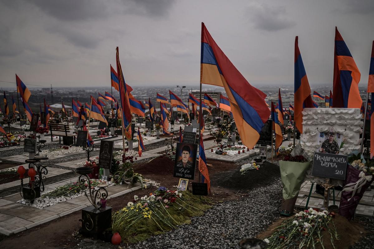 Захоронения, где рядами лежат ровесники погребенных на Ераблуре армян, появились после войны 2020 года и в Азербайджане. С каждой стороны погибли тысячи. Каждая продолжает настаивать, что ее потери меньше, чем урон, нанесенный противнику.