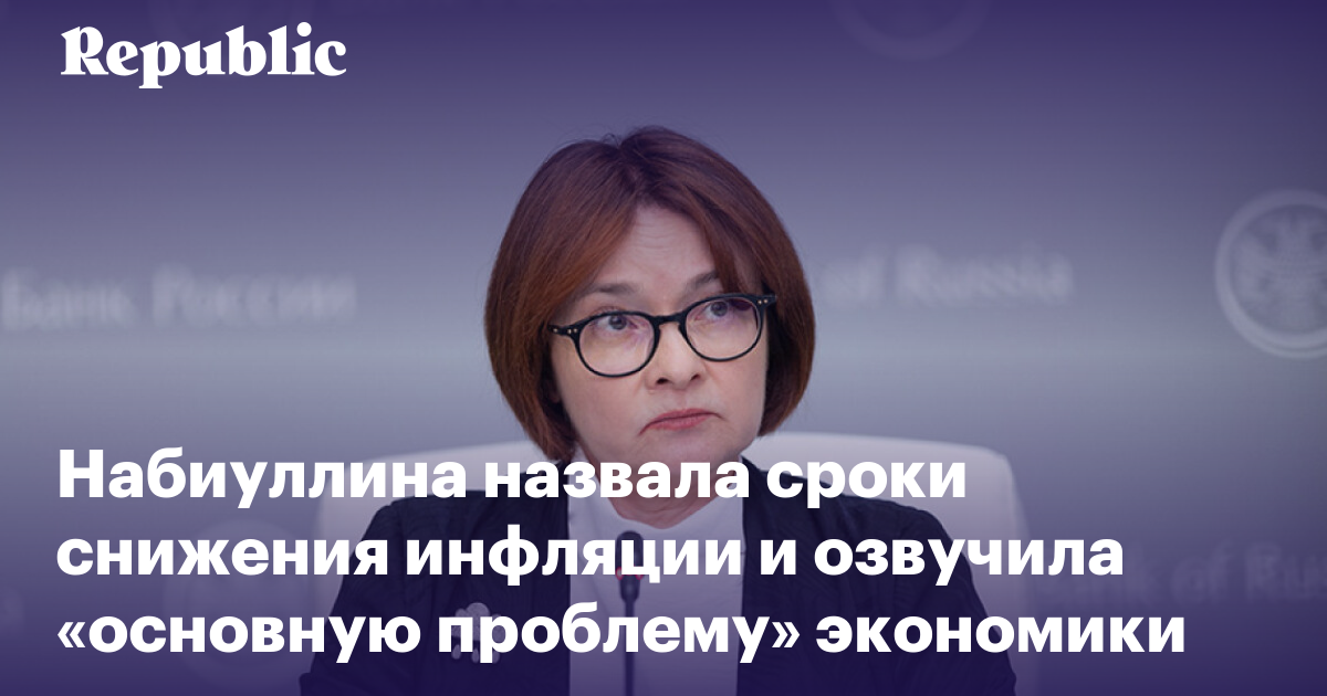 Глава Центробанка Эльвира Набиуллина выступила на совместном заседании нескольких профильных комитетов Госдумы, посвященном государственной денежно-кредитной политики. Она назвала сроки снижения инфляции в России, высказалась о ключевой ставке, не исключив очередное ее повышение в этом году, и озвучила «основную проблему» экономики страны. Republic тезисно пересказывает главные заявления главы ЦБ.
