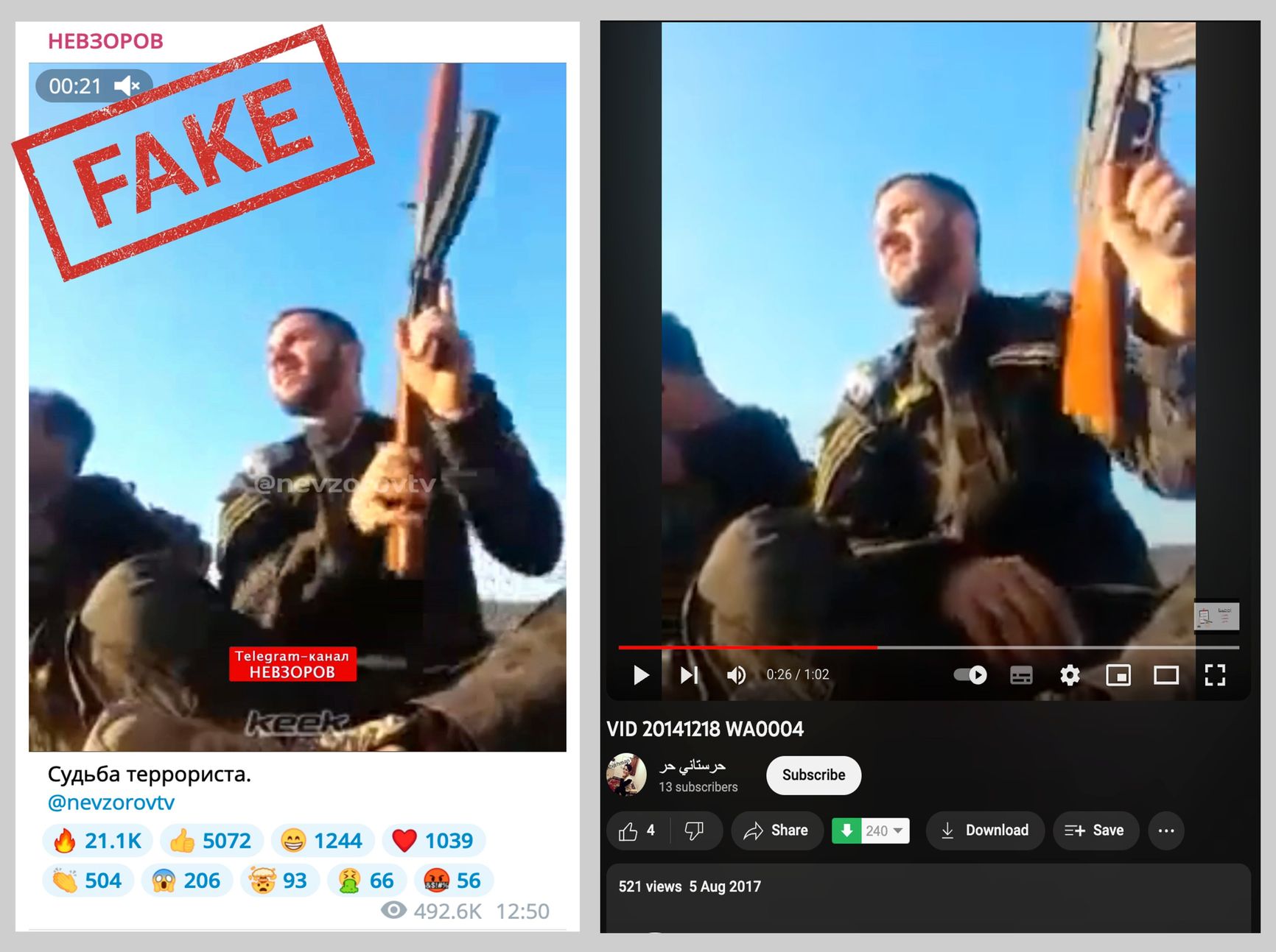 Like many accounts, he took six-year-old footage supposedly taken in Syria and posted it in October 2023, captioning it «A terrorist’s fate.” Over the years, this video was passed off as Kadyrovites in Donbas, Azerbaijani troops, and now that the war in Israel has begun, as footage from the Gaza Strip.