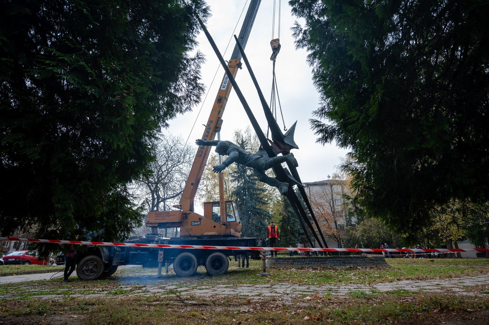 Кадр дня. Снос памятника советскому космонавту во Львове