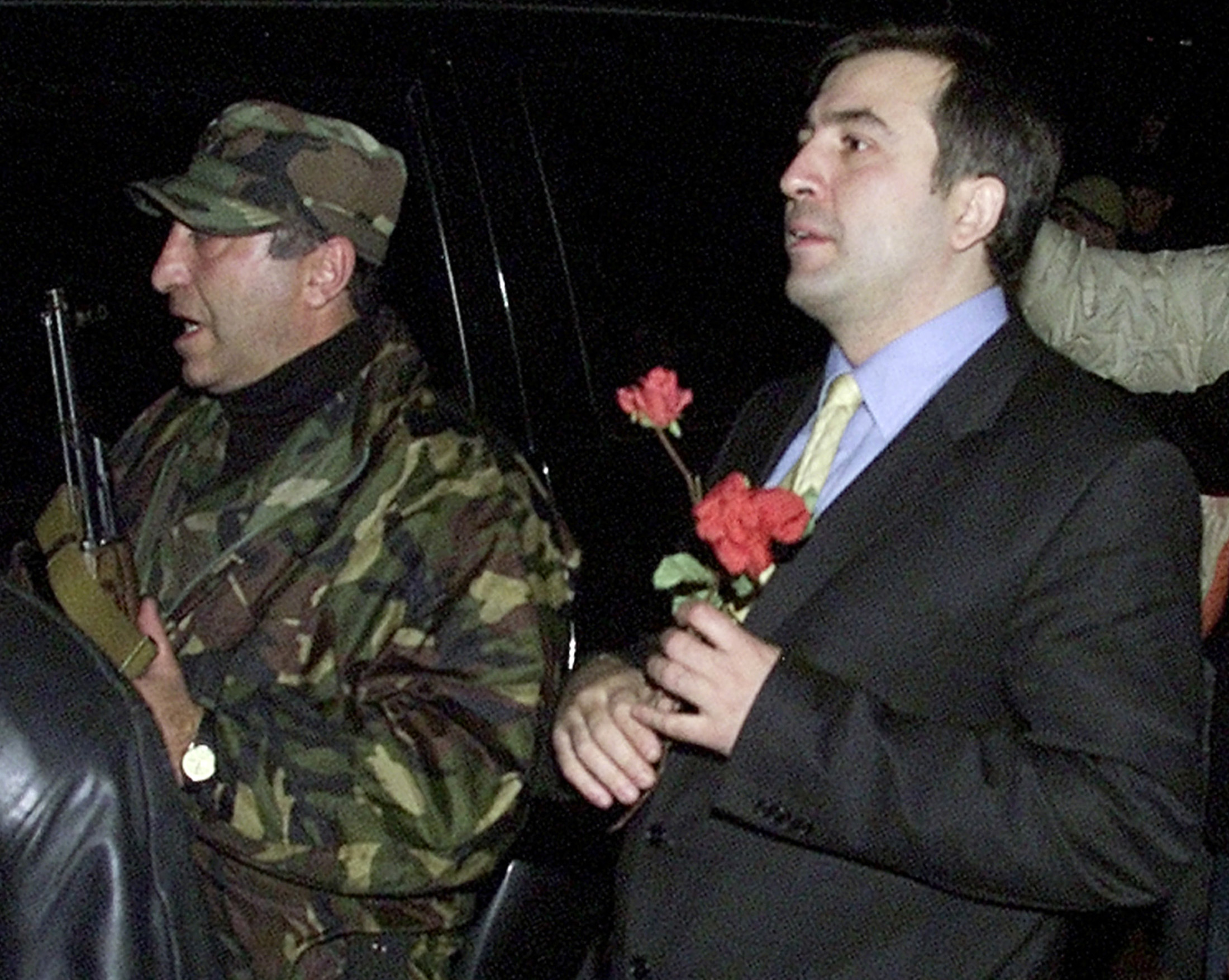 22 ноября Михаил Саакашвили вместе с двумя другими лидерами революции – Зурабом Жвания и Нино Бурджанадзе, а также депутатами от оппозиционных партий, при поддержке сотен оппозиционных активистов ворвались в зал пленарных заседаний во время выступления президента Шеварднадзе, открывшего первое заседание новоизбранного парламента. При этом сам Саакашвили и другие революционеры держали в руках розы. Отсюда и пошло название "революция роз". Вечером 23 ноября Эдуард Шеварднадзе подал в отставку под давлением многотысячного митинга у здания парламента. В январе 2004 года граждане Грузии огромным большинством (около 97%) избрали Михаила Саакашвили третьим президентом страны.