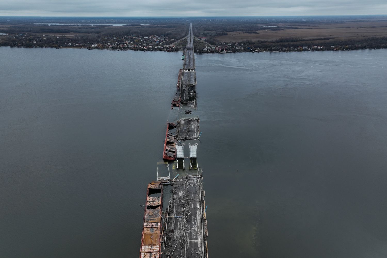 Bernat Armangue / AP / Scanpix / LETA Панорама Антоновского моста, взорванного российской армией при отступлении из Херсона на левый берег Днепра. ВС РФ разрушили объект, завершив вывод своих соединений из города. 27 ноября 2022 годаDagaz / AP / Scanpix / LETA Военнослужащая ВСУ на въезде в Херсон в момент входа в город колонн украинской армии. 11 ноября 2022 годаAFP / Scanpix / LETA Житель Херсона с флагом Украины рядом с блокпостом на въезде в город. До отступления российских войск блокпост контролировался ВС РФ. 13 ноября 2022 годаChris McGrath / Getty Images Железнодорожное соединение украинских регионов с Херсоном было восстановлено в рекордно короткие сроки после освобождения города ВСУ. На фото — местный житель Микола Десятников встречает на вокзале свою жену Людмилу, которая вернулась домой первым же поездом. 19 ноября 2022 годаRoman Hrytsyna / AP / Scanpix / LETA Обстрелы города российская армия начала в первые же дни после отступления из него. На фото — пожар, вызванный ракетным ударом со стороны ВС РФ. 19 ноября 2022 годаBernat Armangue / AP / Scanpix / LETA Жители Херсона, пострадавшие при российском ракетном ударе. 24 ноября 2022 годаBernat Armangue / AP / Scanpix / LETA Здание, поврежденное в результате российского ракетного удара по Херсону. 24 ноября 2022 годаChris McGrath / Getty Images Ребенок-сирота в Херсонской областной детской клинической больнице во время отключения электричества 26 ноября 2022 года. В период оккупации персонал медицинского учреждения укрыл на его территории группу из 10 сирот в возрасте от двух месяцев до двух с половиной лет, чтобы спасти детей от принудительного вывоза в аннексированный Крым или российские регионы (в итоге, по данным украинских властей, в Россию все равно попали 46 воспитанников местного приюта — их дальнейшая судьба остается неизвестной). Заботиться о них приходилось в экстремальных условиях — не только во время отключений электричества, но и во время бомбардировок города. Медсестры в больнице иногда работали по 48 и даже 72 часа подряд. А одна из медсестер даже стала приемной матерью ребенка-сиротыChris McGrath / Getty Images Пока некоторые жители возвращались в Херсон после его освобождения, их соседи, напротив, уезжали из города из-за российских обстрелов, нарушивших водо- и электроснабжение. На фото — женщина ожидает отправления эвакуационного поезда из Херсона, организованного властями для людей, которые нуждались в более безопасном месте жительства. 21 ноября 2022 годаRoman Pilipey / EPA / Scanpix / LETA 39-летний житель Херсона Сергей варит картофель на открытом огне во дворе своего дома 24 ноября 2022 года. Вместе со своей матерью Светланой он провел в городе все восемь месяцев российской оккупации, а после освобождения Херсона ВСУ еще некоторое время вынужден был выживать в условиях отсутствия воды и электричестваRoman Pilipey / EPA / Scanpix / LETA 73-летняя жительница Херсона Светлана (мать Сергея с предыдущей фотографии) пилит дрова, чтобы развести костер и приготовить пищу. 24 ноября 2022 годаIvan Antypenko / EPA / Scanpix / LETA При отступлении российская армия разрушила инфраструктуру Херсона. Город остался без света и воды. Водоснабжающие скважины залили бетоном. Жителям Херсона приходилось набирать воду в реке (где были обстрелы снайперов) и где придется. 18 ноября 2022 годаRoman Pilipey / EPA / Scanpix / LETA Жители одного из прифронтовых сел под Херсоном в очереди за гуманитарной помощью. 26 ноября 2022 годаDimitar Dilkoff / AFP / Scanpix / LETA Вид на разрушенную российским снаря