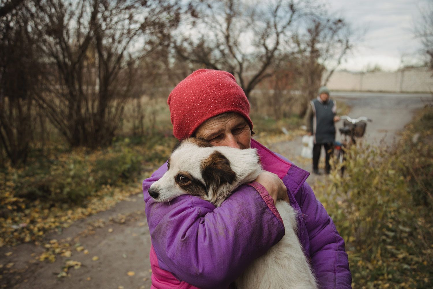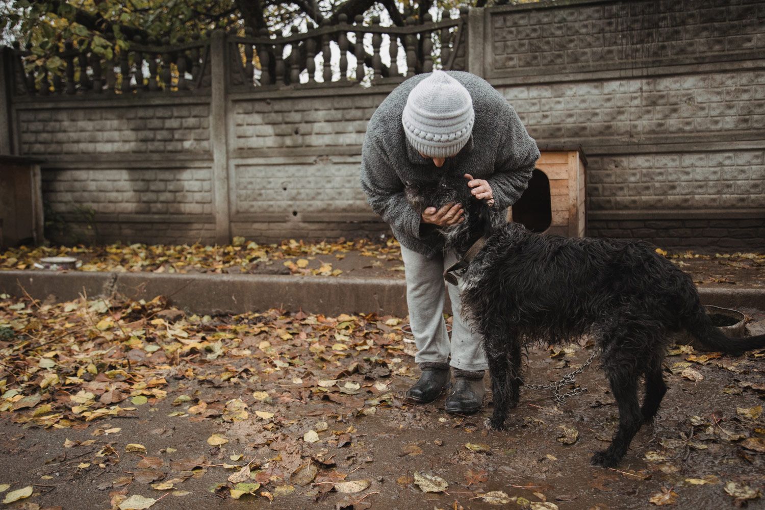 До войны у меня был приют на 57 собак — здесь же, в Русских Тишках. Когда началась война, мы не могли их бросить, поэтому остались здесь с мужем и моей парализованной мамой. Местные стали уезжать и приводить ко мне своих питомцев — просили, чтобы я их сберегла. Иногда приносили раненых [под обстрелами] собак и кошек. Но часто животных просто бросали: мы находили их запертыми в квартирах, оставленными на цепи во дворе или на улице.
