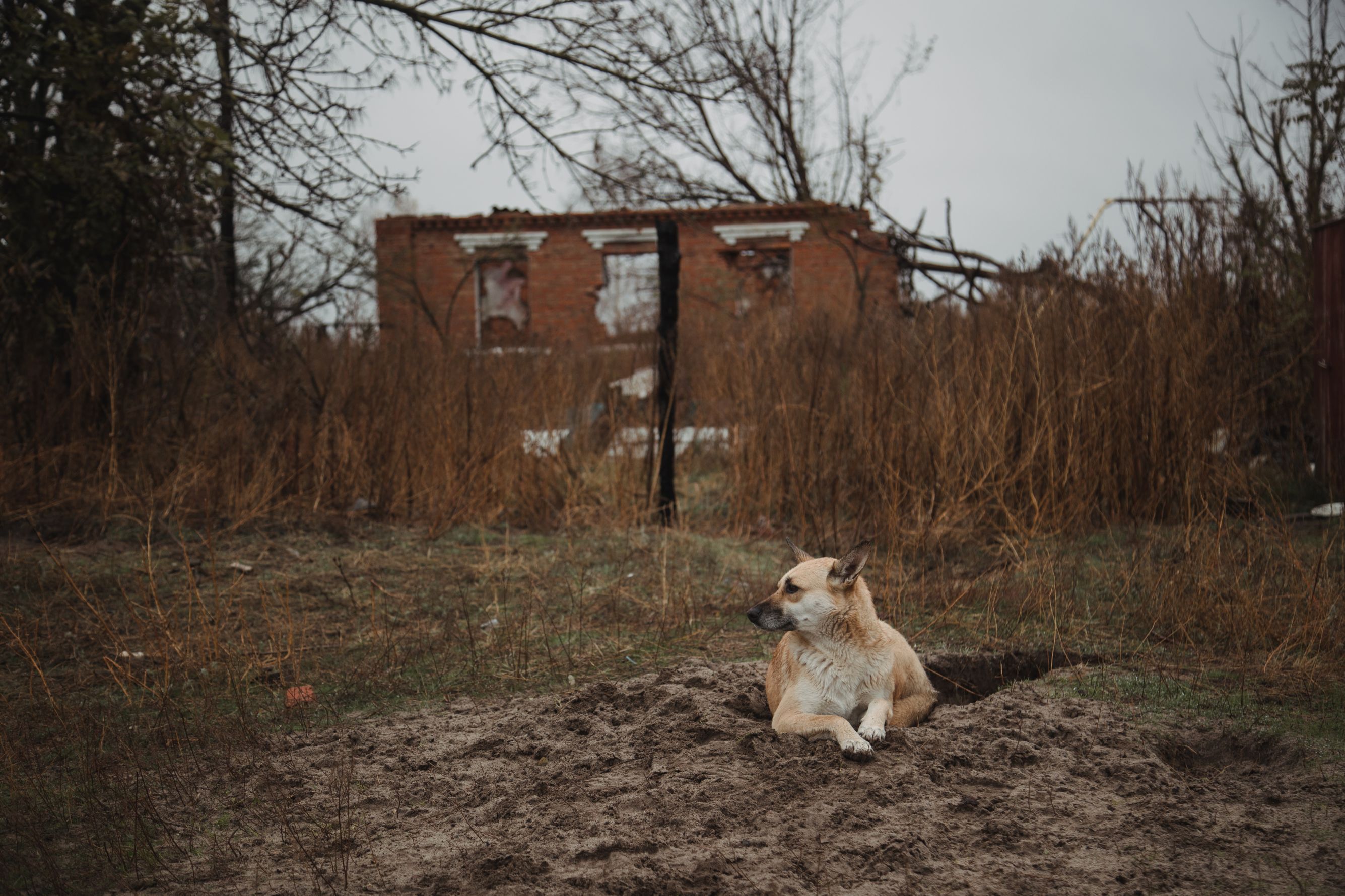 Больше года Граф прожил один в погребе. Он понимал, что именно в погребе безопасно. Были и флигель, и сарай, и сам дом, но пес выбрал погреб. Я ходила к нему во двор и кормила, ставила рядом кастрюли [с едой]. Ходила до тех пор, пока 5 мая не поменялись местами русские с украинцами и русские не начали бомбить нас так, что дойти куда-либо стало уже невозможно.