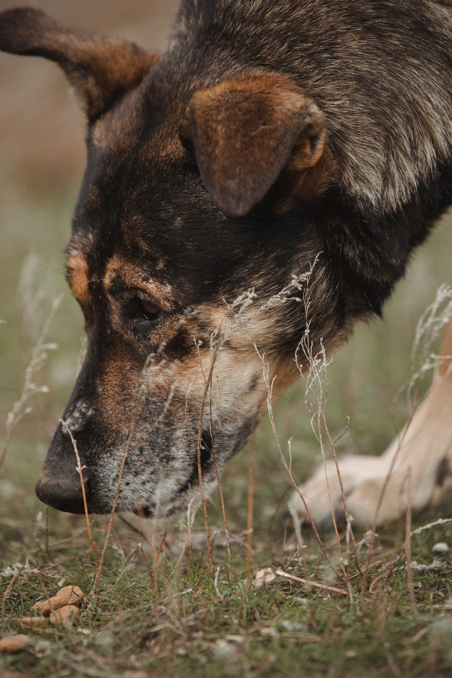 Цезаря я нашла еще до [начала полномасштабной] войны — на кладбище, еще с двумя братьями-щенками. Я не спешила их оттуда забирать, просто носила им еду и воду. А один раз прихожу — вижу их обгоревших в кустах, но живых. Я забрала их к себе и вылечила. Цезарь — один из тех трех щенков. Остальные два тоже у меня живут.