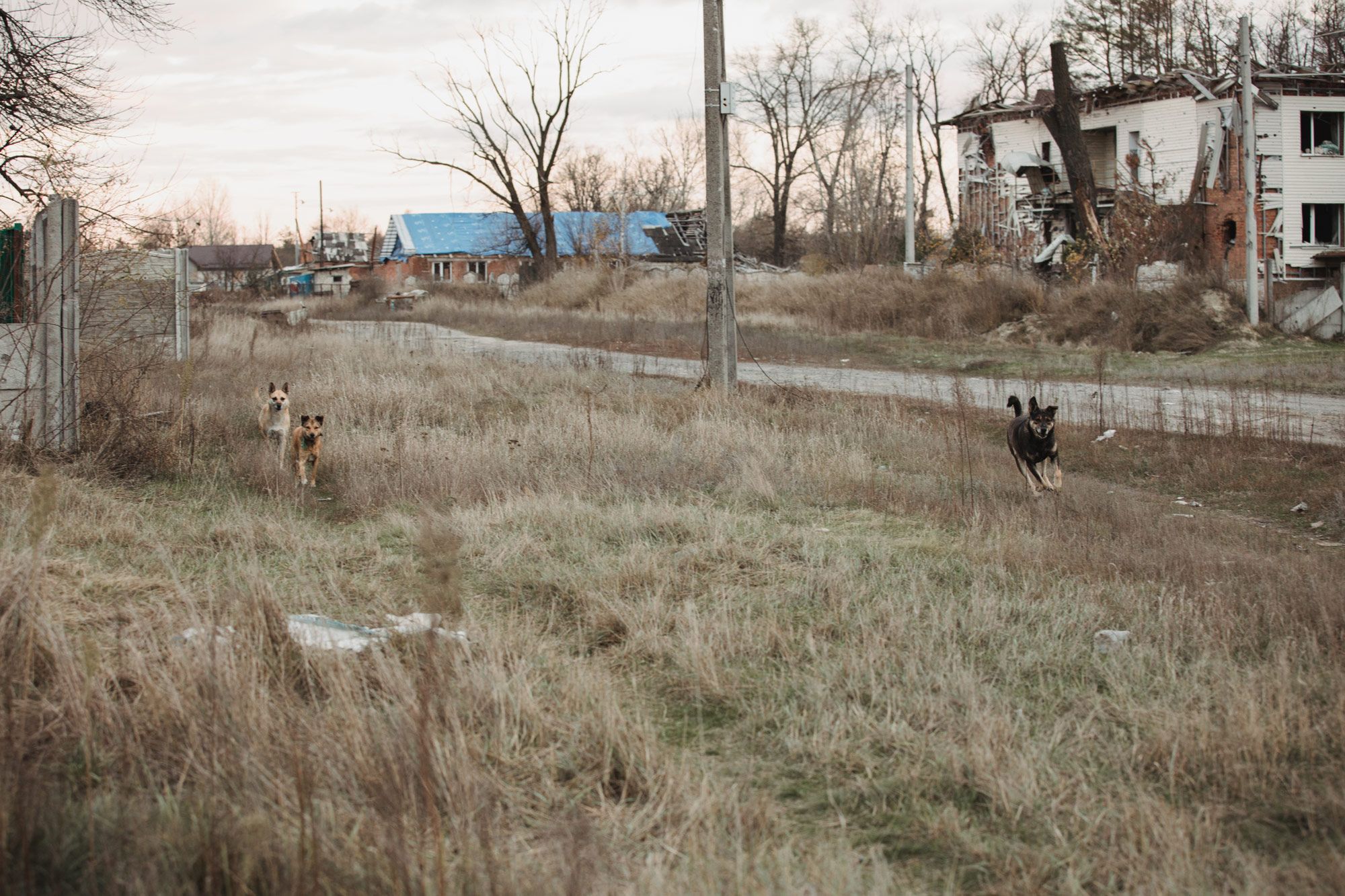 Украинское село Русские Тишки находится в 20 километрах езды от Харькова — и в 30 от границы России. В первые же часы полномасштабного вторжения туда вошли российские военные и оставались два с половиной месяца, используя как плацдарм для обстрелов Харькова. В мае 2022 года ВСУ удалось отбить Русские Тишки и оттеснить россиян на несколько километров. С этого момента село стало мишенью — месяцы непрерывных обстрелов российской армии почти полностью разрушили его. Жители Русских Тишков стремительно эвакуировались, и теперь из почти двух тысяч человек там осталось лишь несколько десятков. Покидая село, люди оставляли в нем своих домашних животных — собак, кошек, коров, коз, лошадей, уток, гусей, кур, даже павлинов — и теперь зверей в Русских Тишках больше, чем людей. По мере сил о животных заботятся Елена Бубенко, ее муж Анатолий и еще несколько человек. Украинский фотограф Яков Ляшенко несколько раз съездил в Русские Тишки и поговорил с Еленой Бубенко. Она подробно рассказала, как люди вместе с животными все эти месяцы выживали рядом с линией фронта и как спасали друг друга. А заодно — о своих собаках: Снежке, Любе, Дике, Шакире, Оскаре, Биме и многих других.