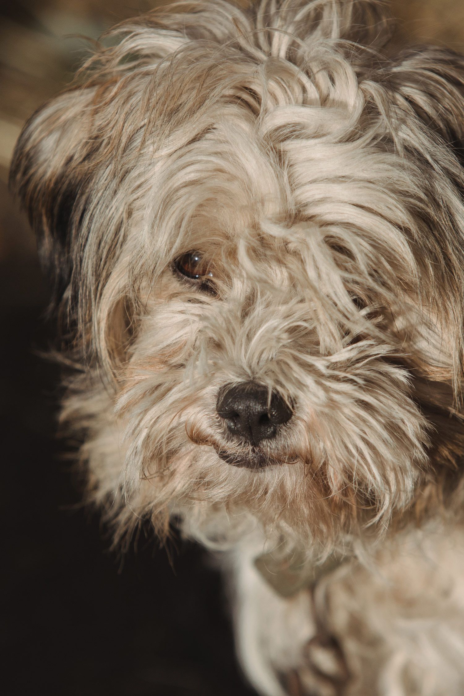 Боня очень кучерявый, и его надо регулярно постригать, а он этого не любит больше всего. Только я два клока шерсти отрежу, так он начинает кусаться. На следующий день еще два клока отрежу, он снова кусается.