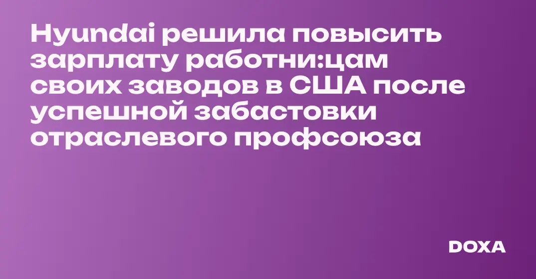 13 ноября компания Hyundai заявила, что к 2028 году повысит заработную плату работни:ц завода в Алабаме на 25%, сообщает Reuters. Такие меры были предприняты руководством компании на фоне успешной забастовки «Объединения автомобильных работни:ц» (UAW), американского профсоюза работни:ц автопрома, добившегося новых коллективных соглашений на предприятиях трех крупнейших автоконцернов в США: Ford, Stellantis и General Motors.