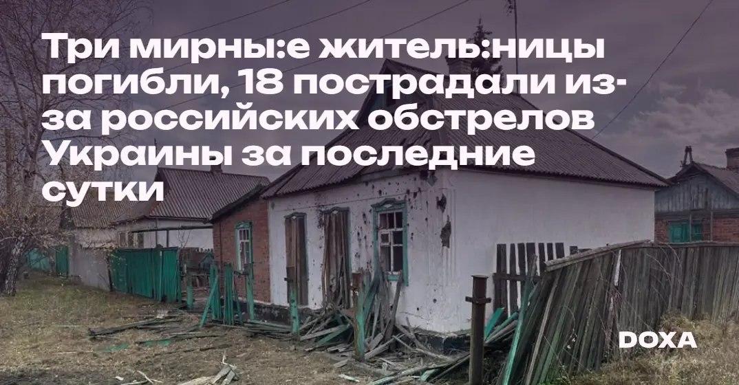 Три мирны:е житель:ницы погибли, 18 пострадали из-за российских обстрелов Украины за последние сутки