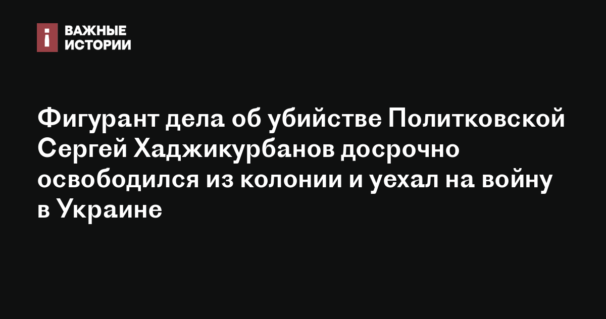 Осужденный за организацию убийства журналистки «Новой газеты» Анны Политковской, бывший оперативник РУБОП Сергей Хаджикурбанов досрочно освободился из колонии и уехал воевать в Украину, cообщает Baza. В 2014 году Хаджикурбанова приговорили к 20 годам лишения свободы, cрок его наказания истекал в 2034 году.