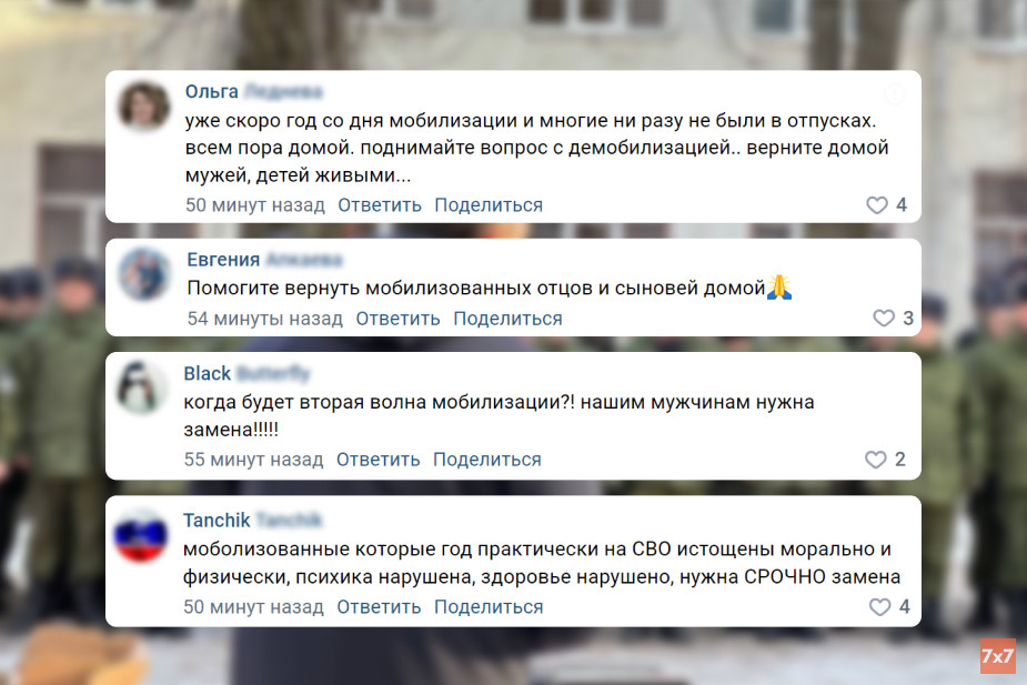 Массовые просьбы вернуть мобилизованных домой появились в сентябре 2023 года во время видеотрансляций глав Ростовской, Белгородской, Ленинградской, Калининградской и Саратовской областей в соцсетях. Родственницы военных закидывали губернаторов комментариями с требованием демобилизации. Сообщений было настолько много, что региональные чиновники не могли их проигнорировать: правительство Ростовской области направило командованию Южного военного округа просьбу предоставить отпуск жителям региона, которых мобилизовали в сентябре 2022 года. Аналогичное обращение к Владимиру Путину и Минобороны подготовил и глава Ленинградской области Александр Дрозденко.