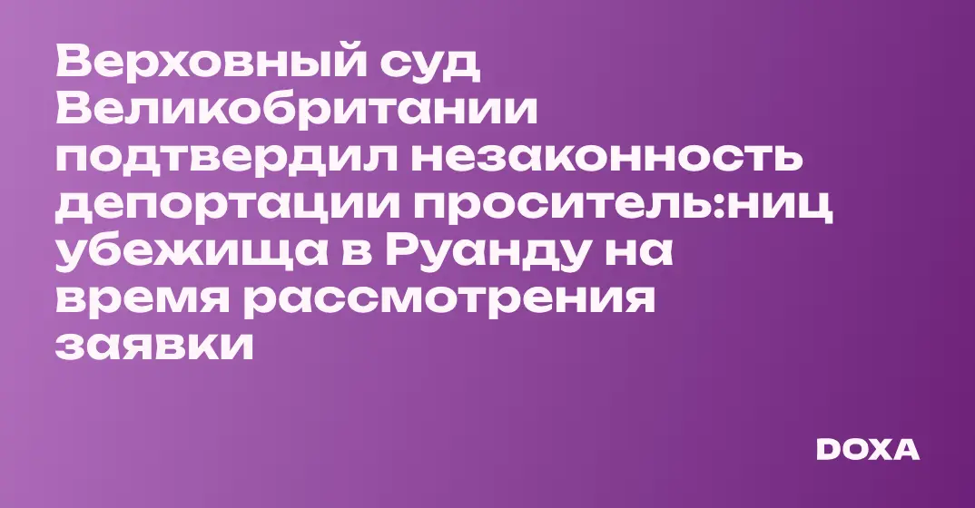 Верховный суд Великобритании подтвердил решение Апелляционного суда о том, что депортировать проситель:ниц убежища в Руанду на время рассмотрения их заявок незаконно, сообщает The Guardian. Судьи заявили, что в таком случае для проситель:ниц будет затруднительно обосновать необходимость предоставления им убежища. Кроме того, председатель Верховного суда сказал, что в случае реализации «схемы с Руандой» проситель:ницы подвергнутся риску отправки в страны происхождения, где им может грозить опасность.
