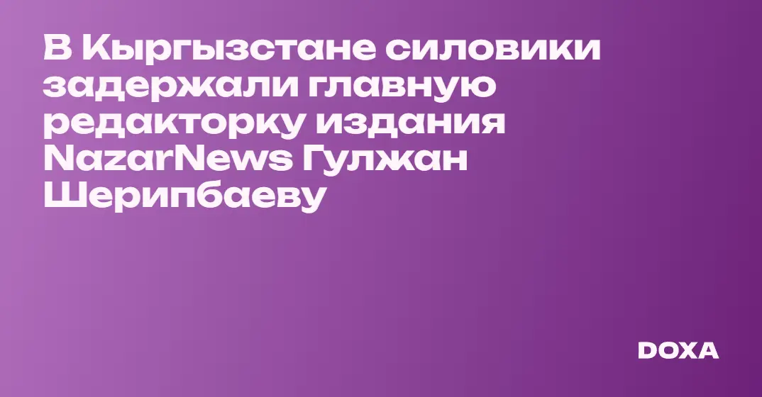 16 ноября в Кыргызстане силовики задержали главную редакторку издания NazarNews Гулжан Шерипбаеву. До этого из офиса редакции ее забрали на допрос, который продолжался около пяти часов. Брат журналистки Майрамбек Каримов сообщил, что ее задержали на 48 часов. Шерипбаева находится в Государственном комитете национальном безопасности, куда сейчас направляется ее адвокат.