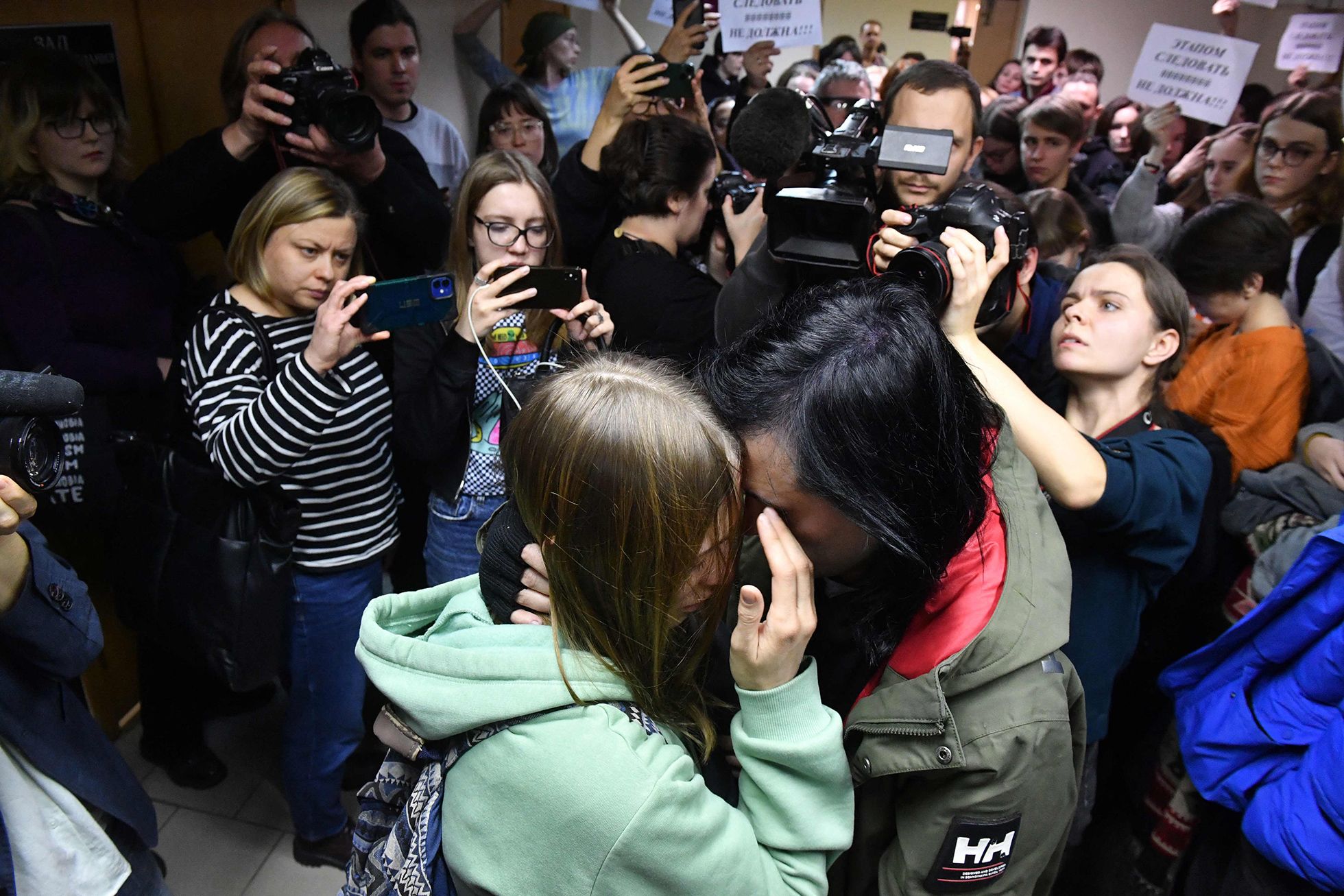 К полудню 16 ноября около зала в Василеостровском суде, где художница должна произнести последнее слово, больше сотни человек. Среди них режиссер Александр Сокуров, бывший гендиректор «Гоголь-центра» Алексей Малобродский, председатель «Яблока» Николай Рыбаков и депутат Законодательного собрания Петербурга Борис Вишневский.