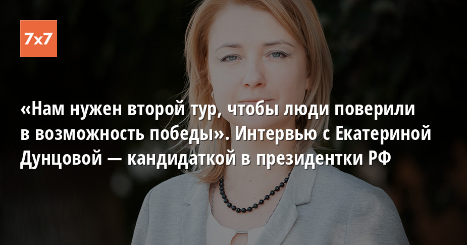«Нам нужен второй тур, чтобы люди поверили в возможность победы». Интервью с Екатериной Дунцовой — кандидаткой в президентки РФ