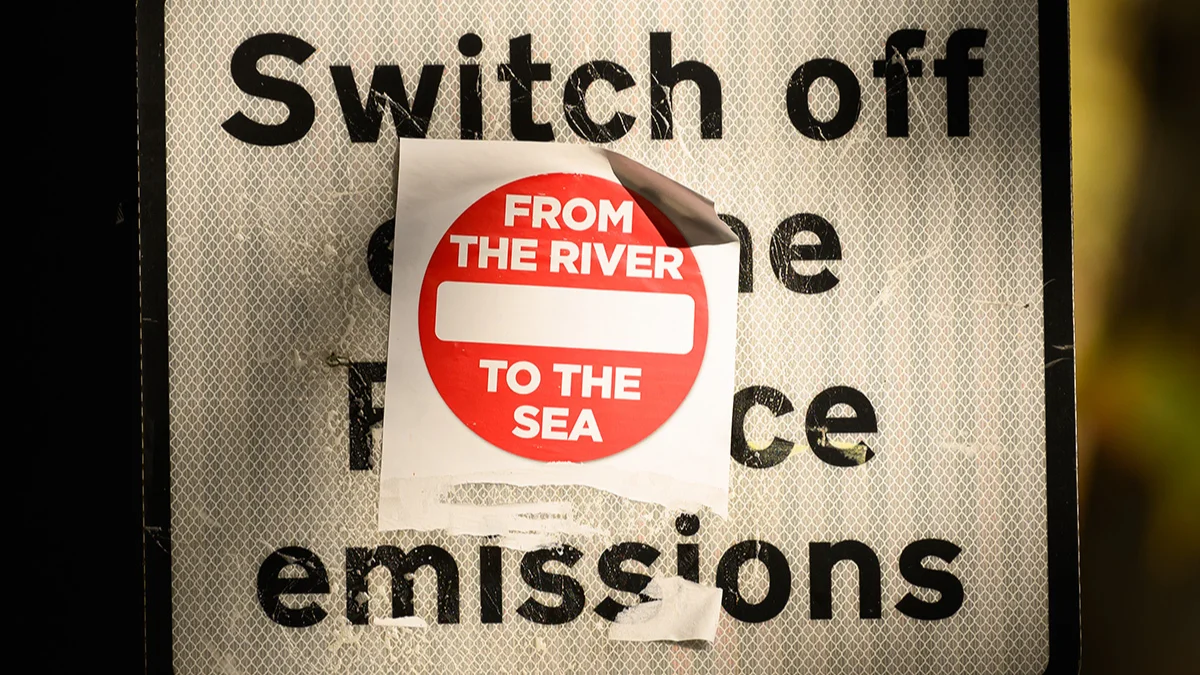 Уличный указатель с надписью «От реки до моря» в поддержку Палестины 15 ноября 2023 г. в Лондоне. Фото: Leon Neal / Getty Images