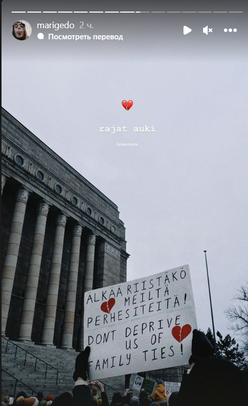 Как говорится в заявлении инициативной группы, организовавшей митинг, ее участники осуждают "практику использования беженцев как оружия в международной политике" и признают, что Финляндия должна обеспечивать безопасность на границах. Но при этом, замечают они, решение закрыть границу ограничивает право людей на встречи с членами семьи.