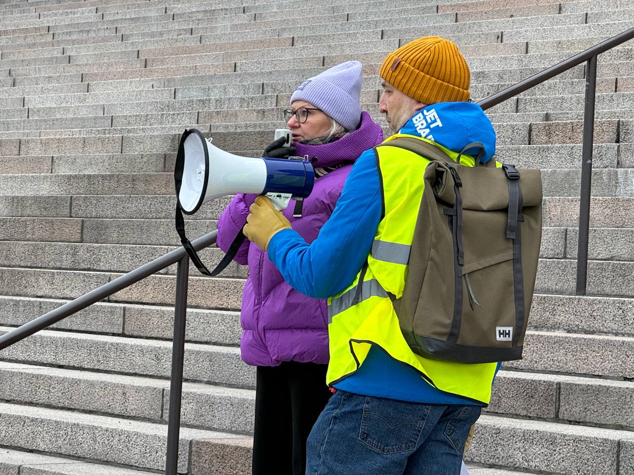 К парламенту Финляндии на митинг пришли, по разным оценкам, от 100 до 300 человек.