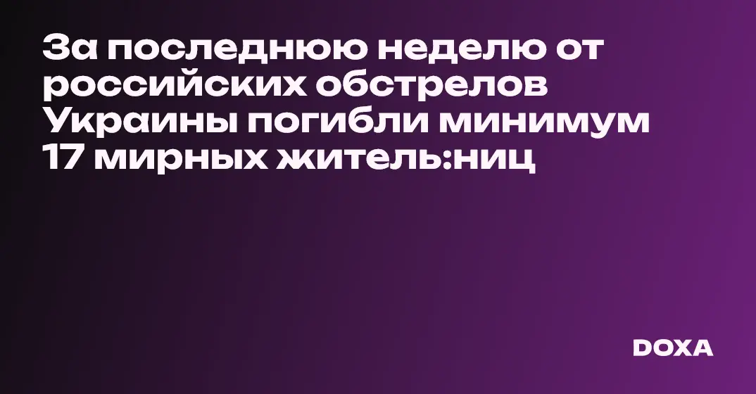 За последнюю неделю от российских обстрелов Украины погибли минимум 17 мирных житель:ниц