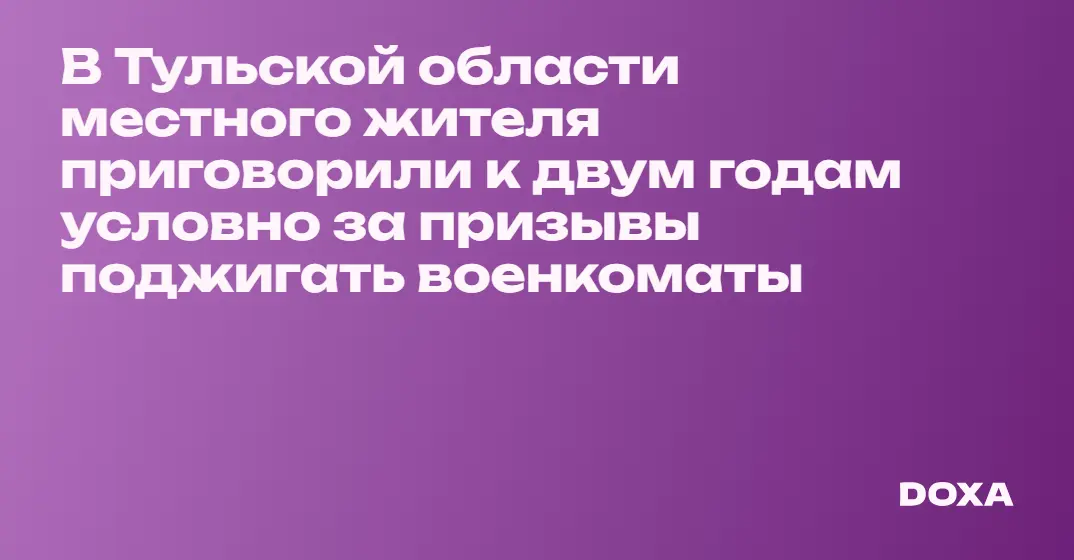 В Тульской области местного жителя приговорили к двум годам условно за призывы поджигать военкоматы
