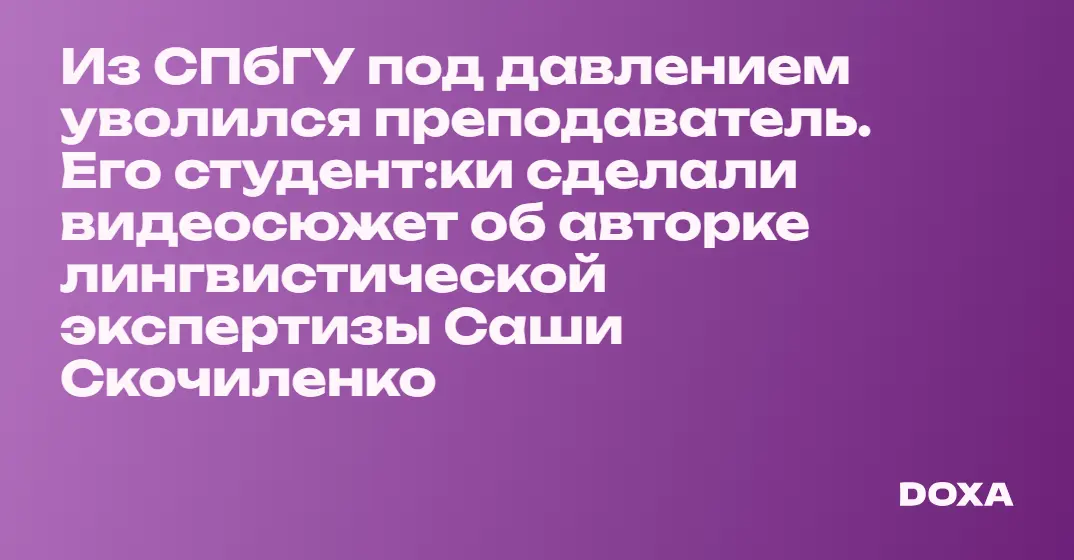Поводом для увольнения мог стать телесюжет об авторках лингвистических экспертиз по делу Саши Скочиленко в рамках учебной программы «Самое время», пишет «Фонтанка». Среди героинь сюжета была Светлана Друговейко-Должанская, которую в октябре уволили из университета за «аморальный поступок». Студент:ки подготовили видео уже после увольнения экспертки из университета. При подготовке сюжета у студенто:к возникли сложности с получением комментариев от комиссии по этике СПбГУ, инициировавшей увольнение Друговейко-Должанской. В итоге видео не вышло на сайте и к преподавателю «возникли вопросы».