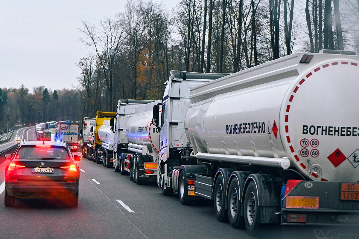 По данным украинского телеканала ТСН, пробка растянулась во Львовской области в направлении пункта пропуска «Рава-Русская». Пограничники не пропускают грузовики с топливом. Машины стоят на паркингах и обочинах в ожидании.