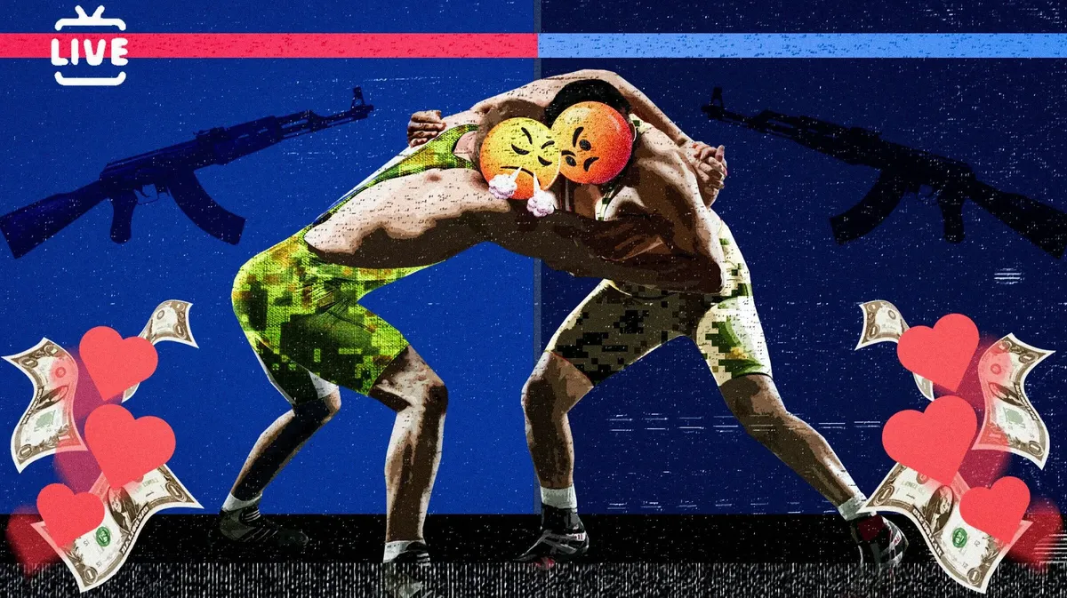 Половину экрана моего телефона занимает мужчина в военной форме, на рукаве нашивка российского флага, на лице — балаклава. В приложении TikTok он рассказывает об отдыхе в Крыму и о том, как там стало хорошо после аннексии полуострова Россией. На другой половине экрана светловолосая девушка на фоне украинского флага перебивает оппонента и включает песню группы «Спів Братів» — «Москва згоріла і втонула». Этот эфир смотрят несколько тысяч человек, они присылают мужчине сердечки, которые заполняют весь экран, и отправляют девушке розы — они появляются в нижней части кадра. Это их будущая зарплата.