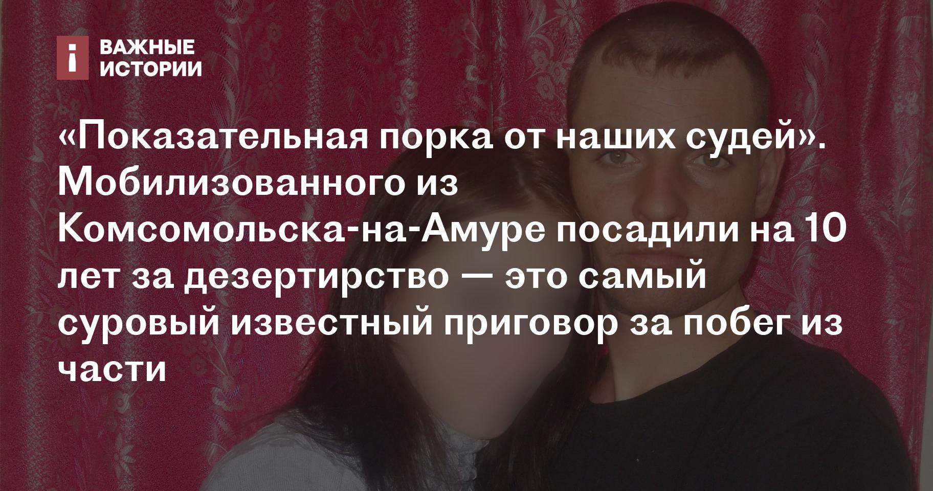 Военный суд Комсомольска-на-Амуре приговорил 36-летнего мобилизованного Романа Егорова к 10 годам колонии строгого режима по делу о самовольном оставлении воинской части и дезертирстве. Это самый суровый известный приговор за самоволку. Решение было вынесено еще в октябре, СМИ обратили на него внимание накануне.