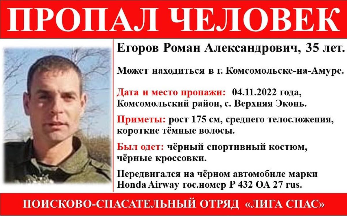 Объявление о розыске Романа ЕгороваИз соцсетей