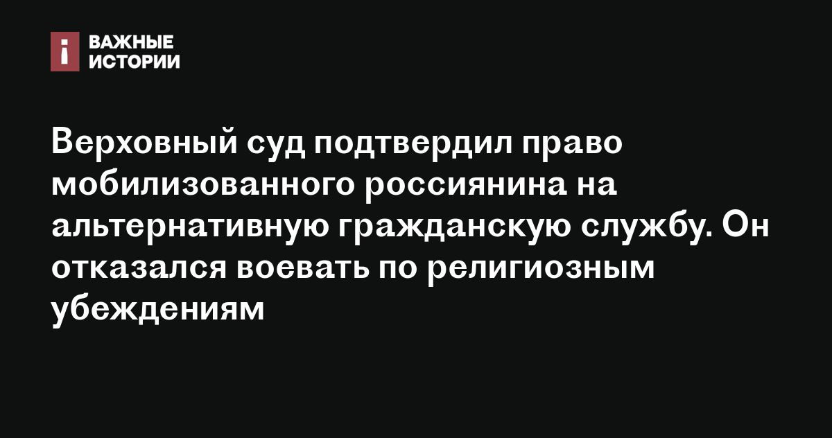 Верховный суд подтвердил право мобилизованного россиянина на альтернативную гражданскую службу. Он отказался воевать по религиозным убеждениям