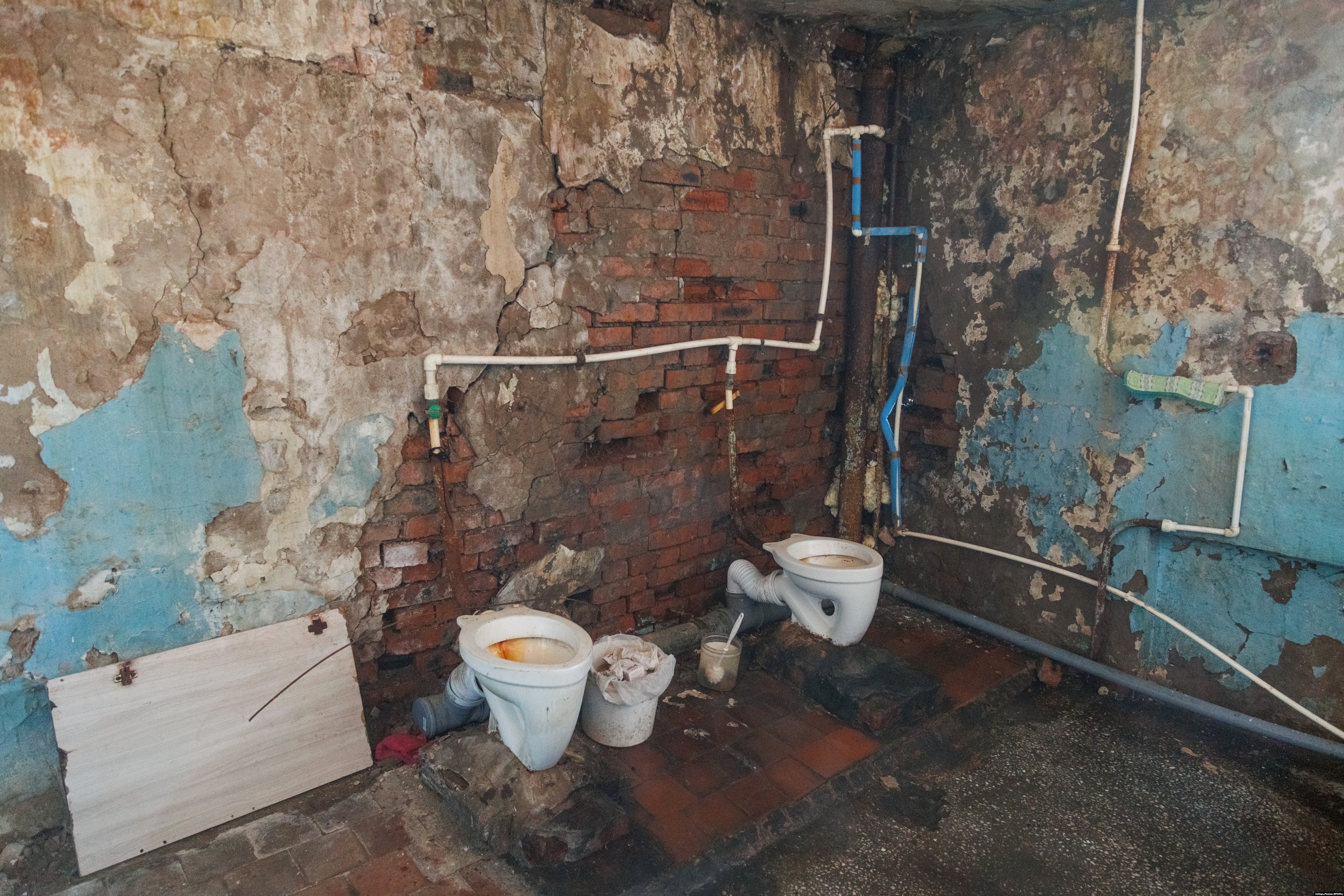 – Вы пойдите, посмотрите, в каких условиях мы живем, – говорит жительница дома по улице Дзержинского Наталья. – Посмотрите, какая у нас кухня, на толчок этот, полный говна, который уже невозможно пробить… Этот дом несколько лет назад сносить пора было. Мы, собственники, должны ремонтировать? Да было бы там что ремонтировать, это бесполезно. Только снести. Плюс часть людей даже не являются собственниками, они вообще ничего сделать не могут. Жить тут невозможно, но и идти нам пока некуда. Деньги государства идут на войну? Я слышала об этом, и в целом поддерживаю действия нашего государства. Но хочется, чтобы и про нас не забыли: решили хотя бы эти наши проблемы, что им, денег на нас не хватает?