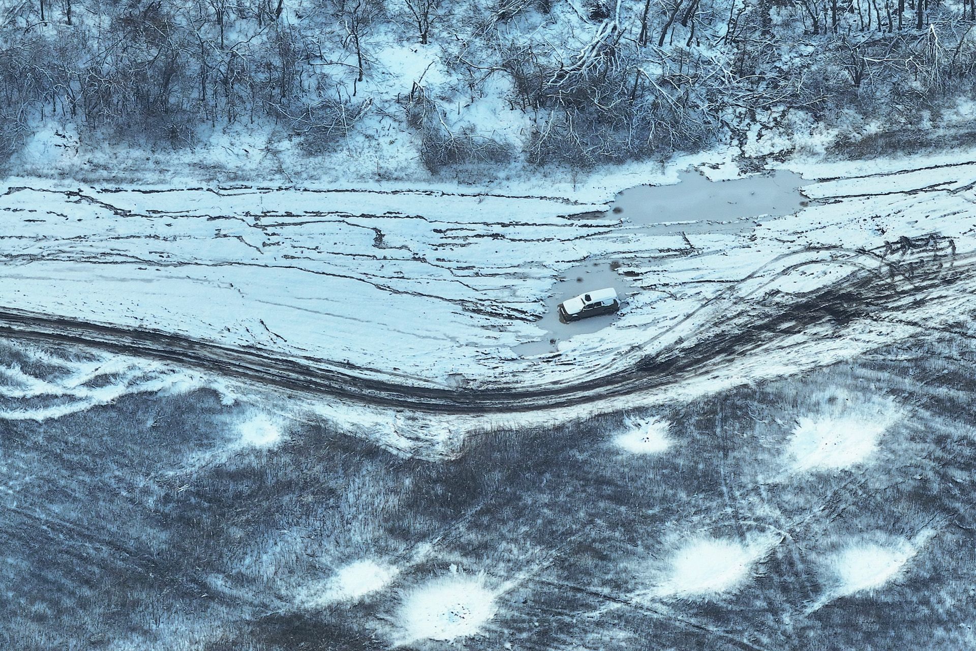 Кадр дня. Подбитый микроавтобус украинских волонтеров