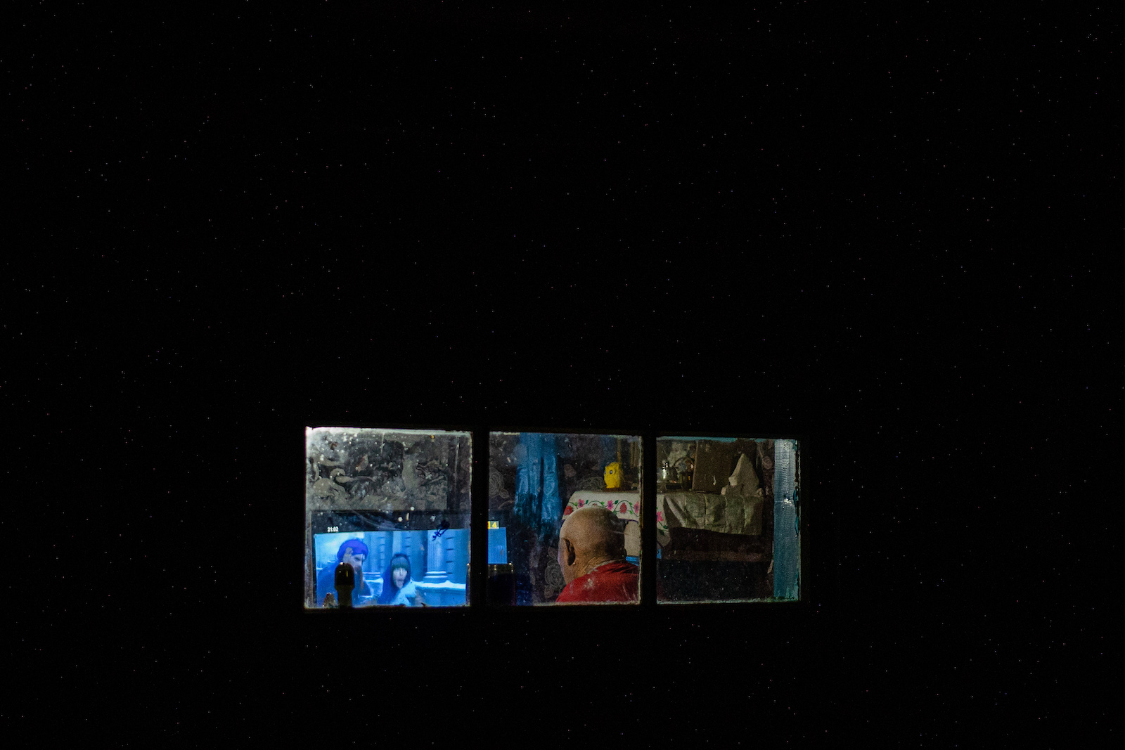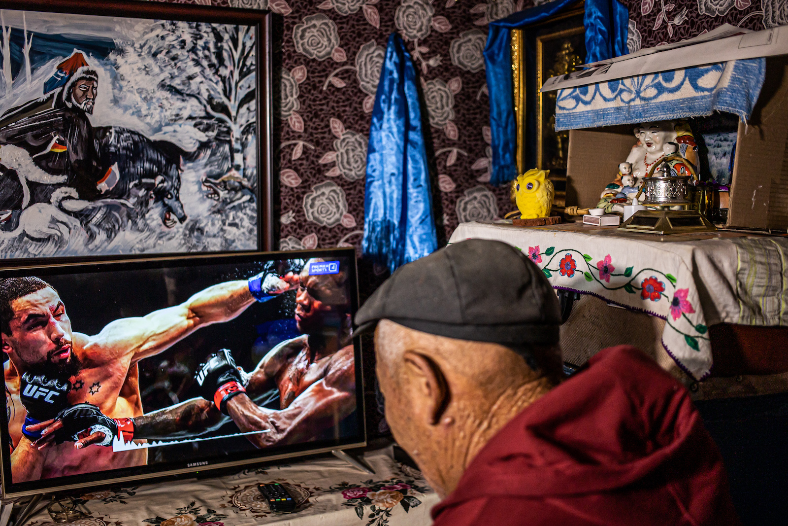 Вечером житель Дадала Гэлэгжамсын Пурэв включает телевизор в своей комнате. Телевизор стоит рядом с алтарём, справа на него смотрит статуэтка Будды. На экране появляется артист Фёдор Добронравов, загримированный под Сталина, – это юмористическая программа "Шесть кадров" на СТС. В Дадале из-за близости к границе можно смотреть все российские телеканалы. Жители сомона учили русский язык в детстве и почти не помнят его. Но российское ТВ иногда смотрят – чтобы "развлечься", объясняет Пурэв.