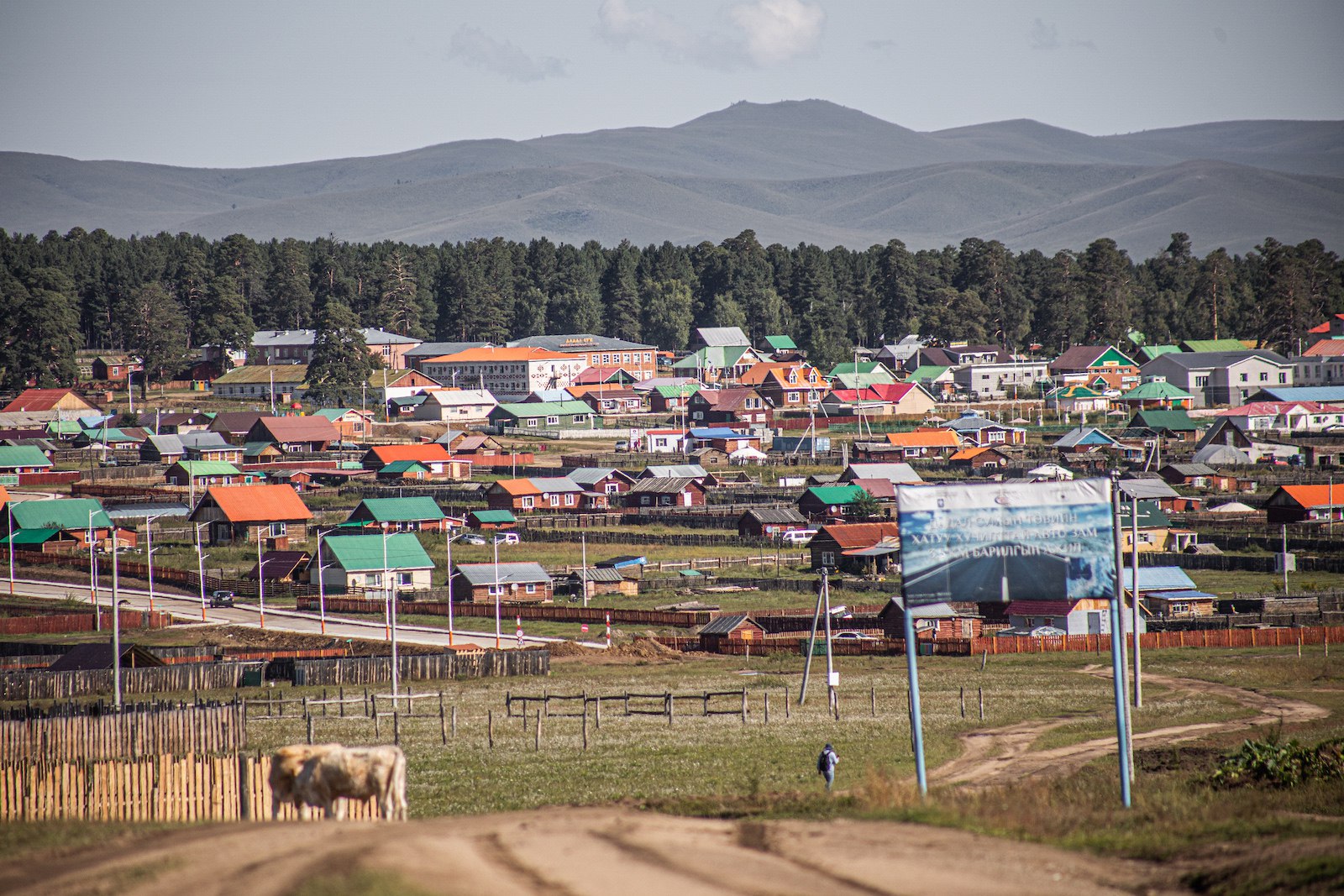 В самом Дадале не-монгольское ощущение усиливается. Юрт, в которых живёт половина страны, тут не встретишь. У всех – деревянные дома. Мычат коровы, кричат петухи.