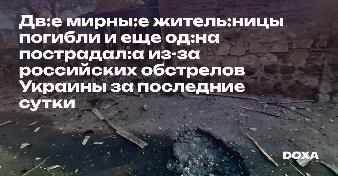 Дв:е мирны:е житель:ницы погибли и еще од:на пострадал:а из-за российских обстрелов Украины за последние сутки