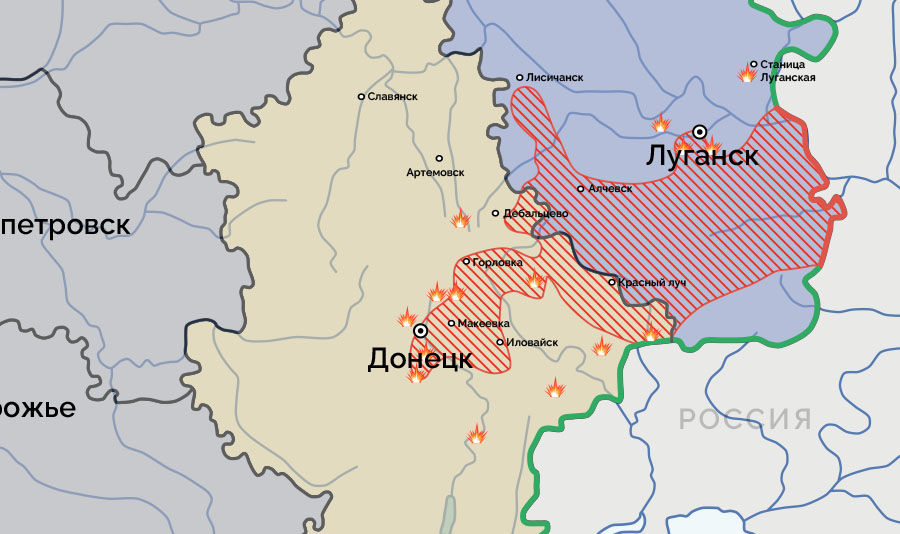 В концу июня 2014-го война уже идет на значительной территории Донецкой и Луганской областей. Тактика ВСУ теперь — взять под контроль границу, чтобы отрезать сепаратистов от поставок оружия из России и притока свежих добровольцев. Что делает в ответ Путин? Повышает уровень эскалации.