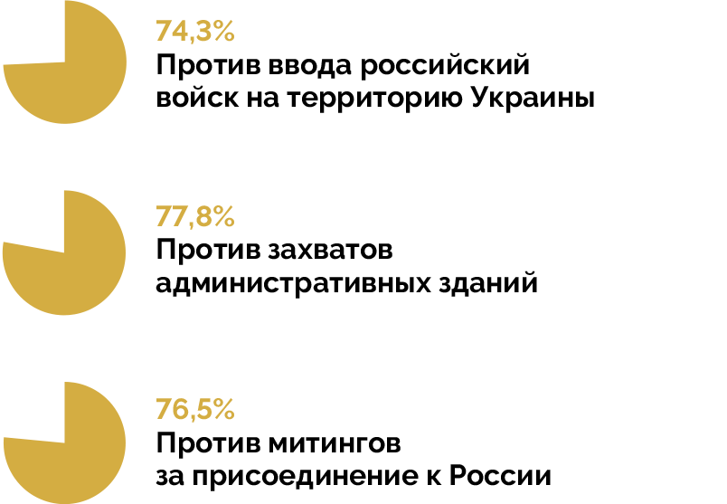 «Только в Донецке и Луганске сопротивление переросло в организованные формы, исключительно потому, что там появились первые группы, как группа Стрелкова, и у них было оружие […]. Когда были громадные протесты от Харькова до Одессы, была допущена ошибка — людям не дали оружие. Из-за этого были потеряны громадные территории, которые можно сегодня возвращать только силовым путем».