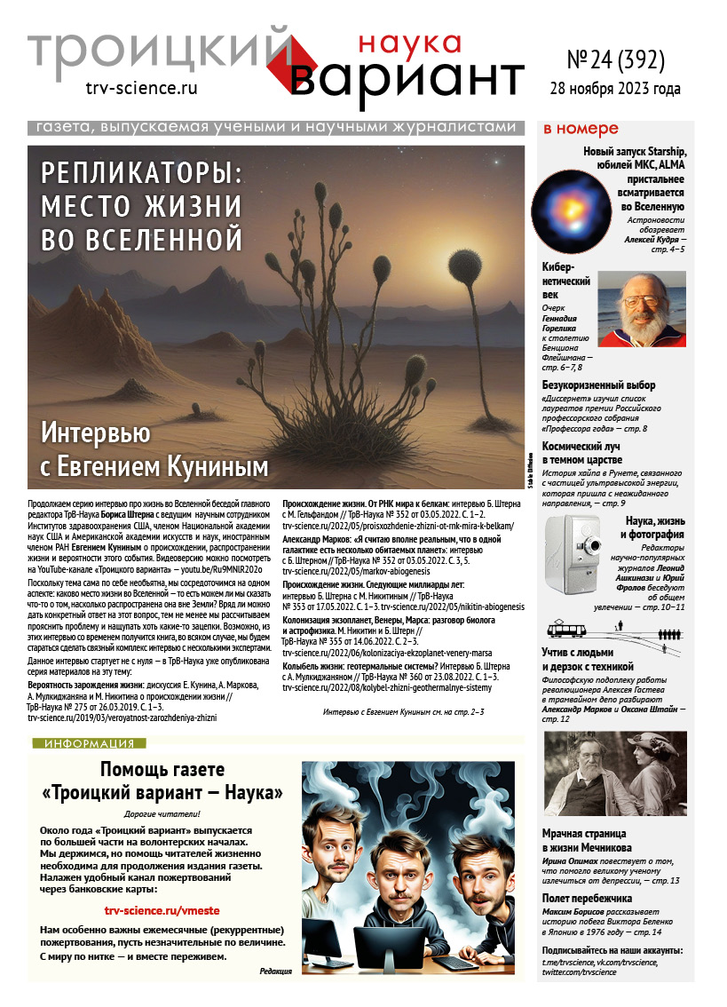 ТрВ № 24 (392) за 2023 г.: Репликаторы: место жизни во Вселенной
