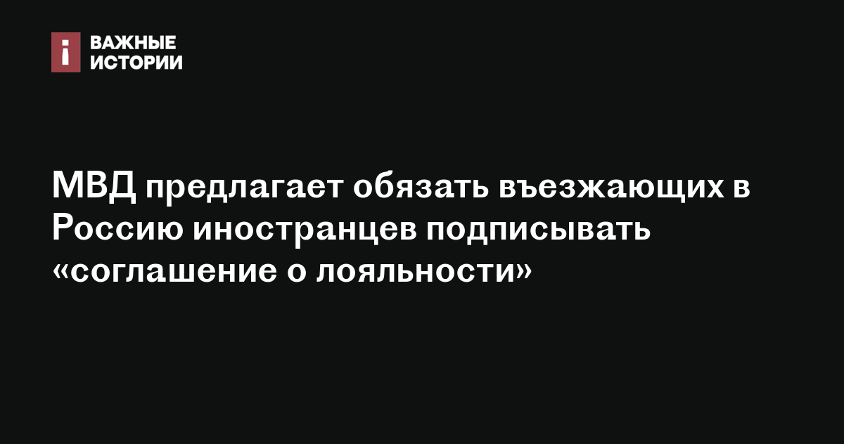МВД предлагает обязать иностранцев при въезде в Россию подписывать «соглашение о лояльности», сообщает ТАСС со ссылкой на разработанный ведомством законопроект. Соглашение предусматривает ряд ограничений, в том числе запрет на критику государственной политики РФ.
