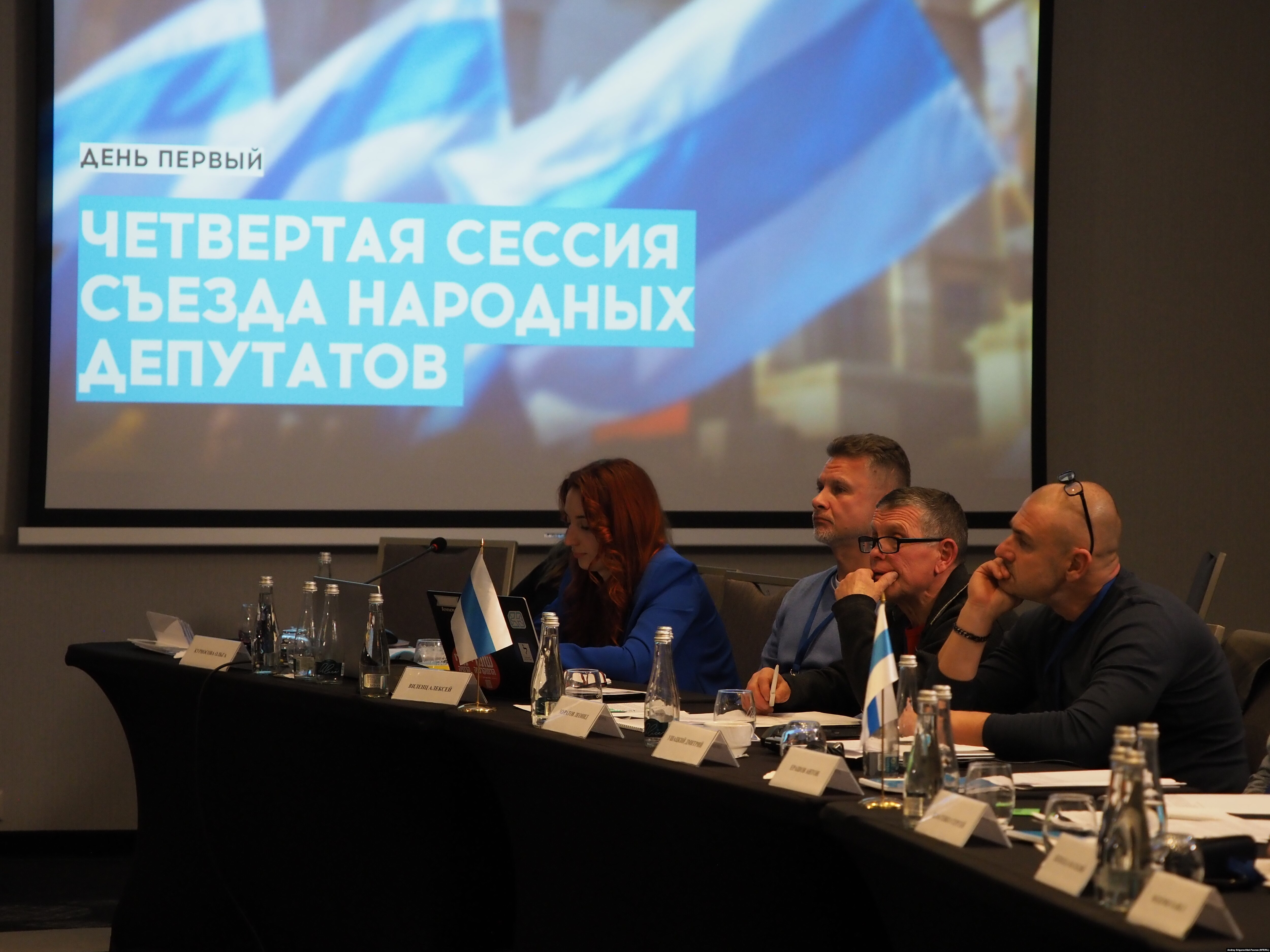 Представители Удмуртии при этом уже успели провозгласить на третьем съезде создание движения "Свободная Удмуртия". Сейчас это движение на съезде представляют два делегата — Сергей Антонов и Николай Суворов (последний живёт в США и участвует в работе "парламента в изгнании" дистанционно). Изначально в движение вошёл и русский националист Василий Крюков, но в перерыве между сессиями его успели исключить как из движения, так и из числа делегатов "съезда народных депутатов".